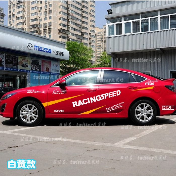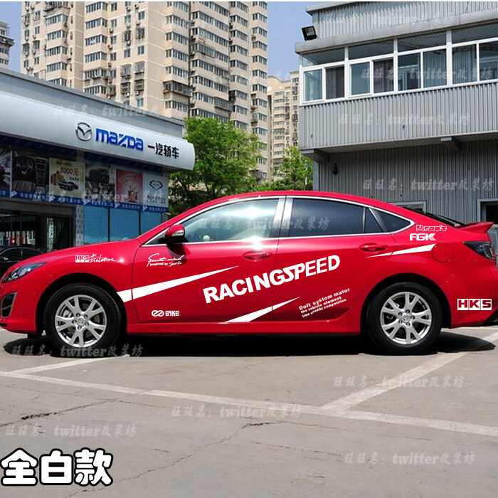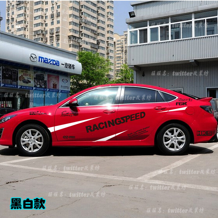 ● Category: Cutting carving class car stickers ● Material: Taiwan Crown KK body special materials, high temperature, UV coating stain the surface, shiny, textured such as paint, waterproof sunscreen, do not fade, Washing and waxing will not affect, peel off without leaving adhesive residue, does not hurt the paint ● Specifications: In accordance with normal body proportions Mazda 6 Mazda 3 sedan body proportions (the default shipping size)