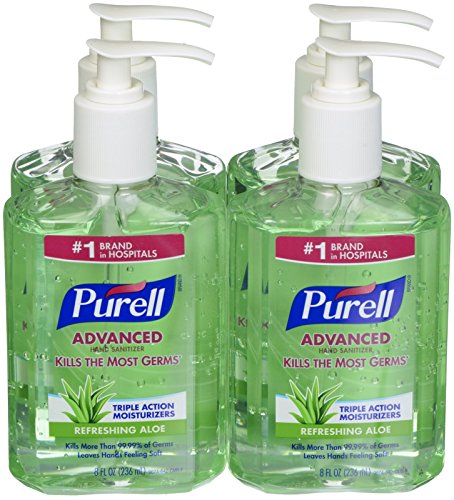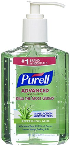 Purell Advanced Hand Sanitizer with Aloe, 8oz Bottles (Case of 4) ? ? Purell clinically proven to protect you and your family. Americas #1 doctor trusted brand this sneezy season. Kills the most germs - just one squirt of Purell Advanced Hand Sanitizer kills as many germs as 2 squirts of any other national brand Enhanced with four nourishing skin-conditioning agents, a skin-friendly formulation that's mild on hands Clinically proven effective in helping to maintain skin health - skin moisture and skin feel Skin-friendly aloe formulaton that's mild on hands in a convenient 8-oz. pump bottle ? ? 0 |