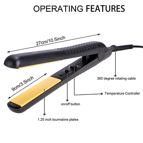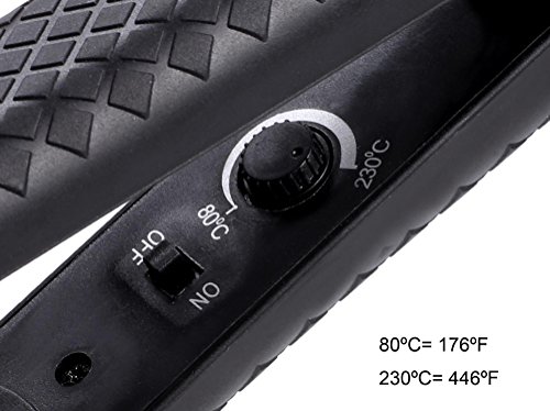 - Adjustable temperature from 176℉ to 450℉ (80℃ - 230℃), The temperature is easily adjustable to suit all hair types and straighten without damaging hair. Heating plates are recessed for added safety, low-mass ceramic tourmaline plates heat quickly and evenly