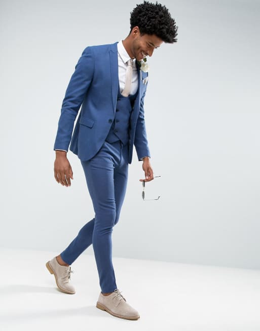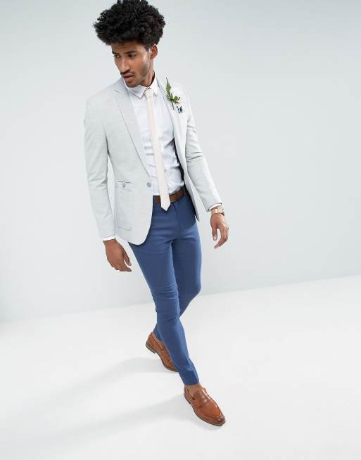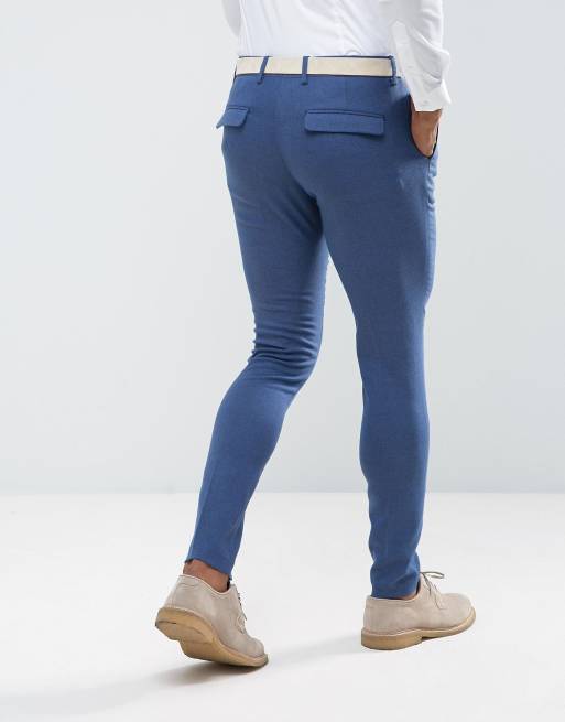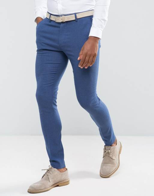 ASOS Wedding Super Skinny Suit Pant In Bright Blue Micro Texture