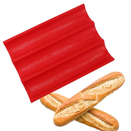Studio : China Publisher : China Product Description 1Pcs Non-Stick Silicone Bread Baking Liners 3 Strip Baguette Toast Making Mould Wave Loaf Baking Pastry Tools.