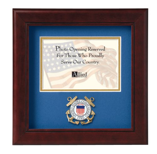-. Feature : Includes one us coast guard medallion / One 4-inch by 6-inch horizontal photo opening / Outside dimensions are 10-inch by 10-inch / Desktop easel and wall mounting hardware included / Made in the usa