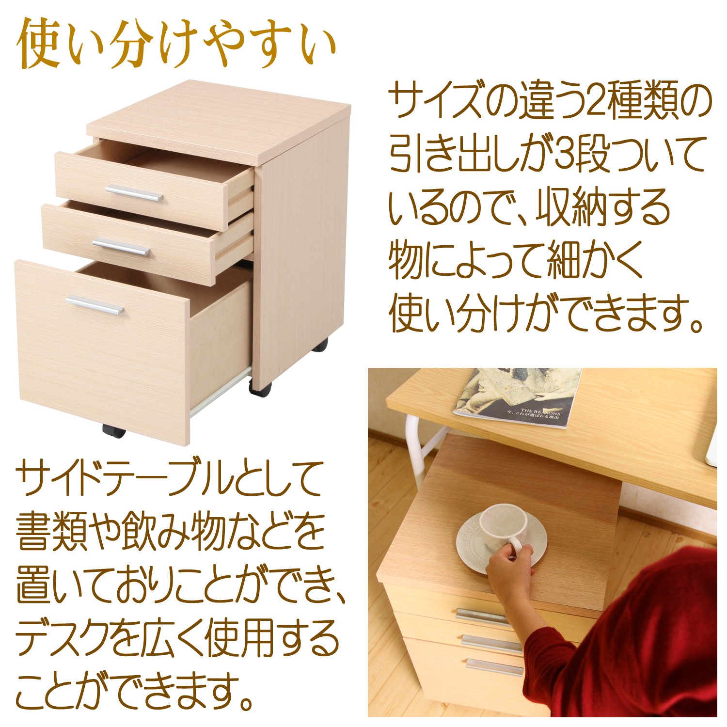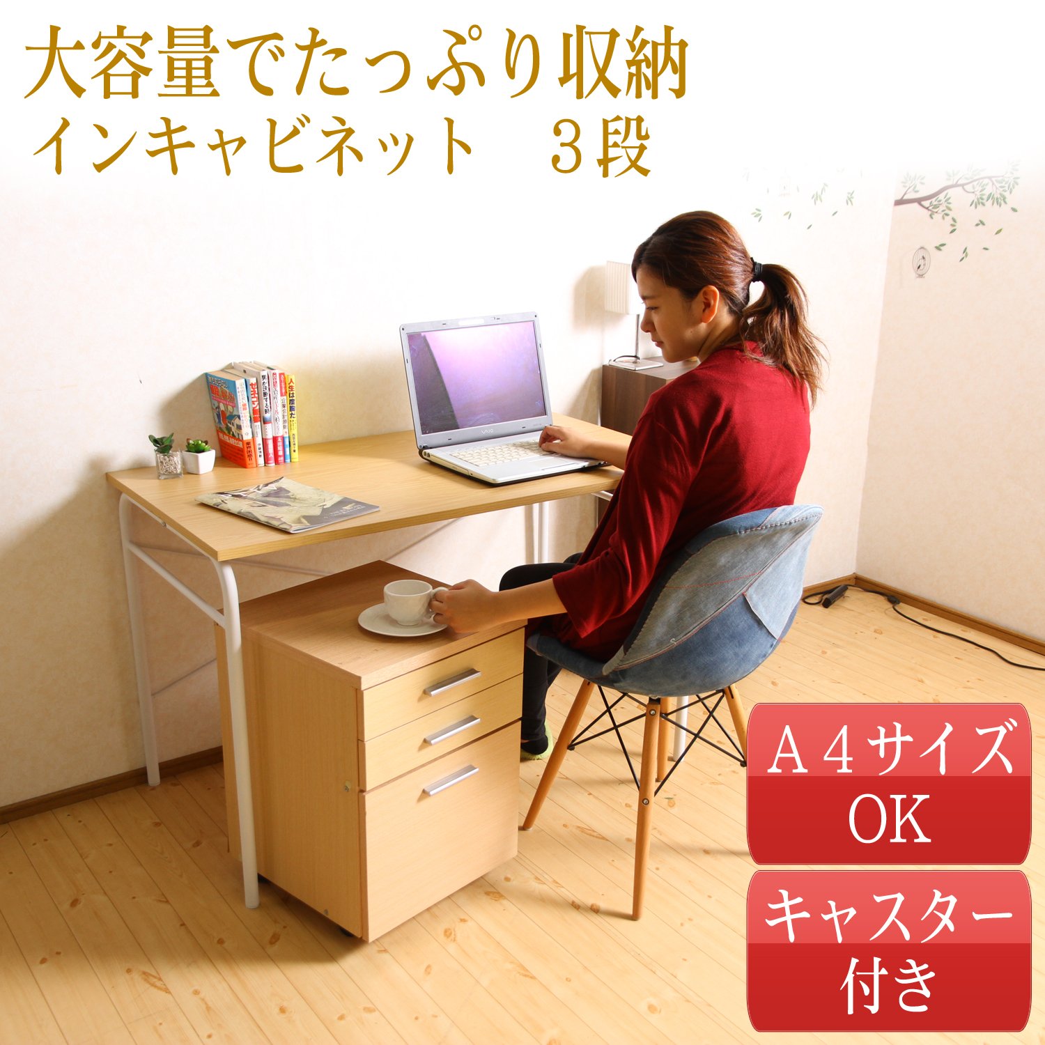 ● Top board: Plastic decorative fiberboard / Other: Printed paper decorative fiberboard ● ※ Slim in cabinet desk is sold separately.