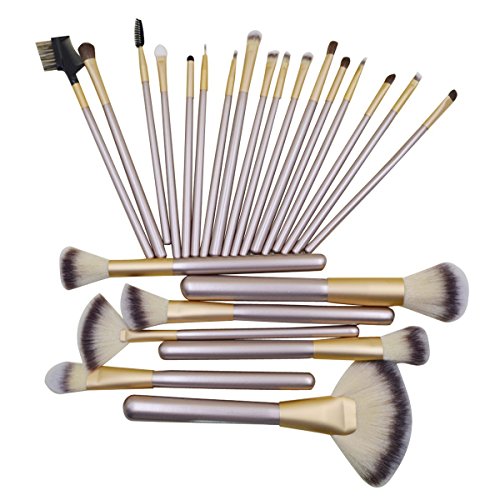 Aisa® 24 Piece Makeup Brushes Professional Kabuki Makeup Brush Set Cosmetics Foundation Makeup Brushes Set Kits with Synthetic Leather Case Color Beige