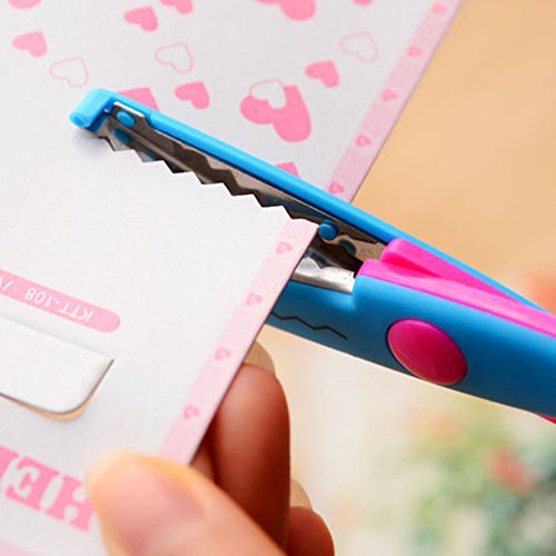 Kids can create fun designs with these safety scissors.Each pair comes with a different pattern,so they can make waves, zig-zags or a straight cut.