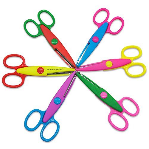 IMPROVE COORDINATION -Package Included:6x Creative Craft Scissors;Each pair of scissors has a unique pattern,for Your Albums, Greeting Cards, Memory Books, Gift Tags & Other Paper & Photo Crafts,Perfect craft scissors for kids at craft time, lots of different ideas can be formulated from all of this, they can improve children's coordination and creativity