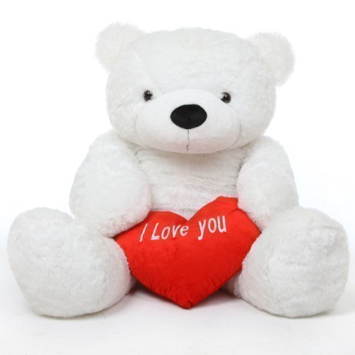 -. Title : 5 Foot Life Size I Love You Teddy Bear White Color Feather Soft Huge Plush Stuffed Animal Coco Cuddles Heart by GIANT TEDDY