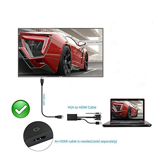 Fivetech VGA Male To HDMI Output 1080P HD+ Audio TV AV HDTV Video Cable Converter Adapter for PC Computer, Notebook, DVD Player,Mac Book, ETC