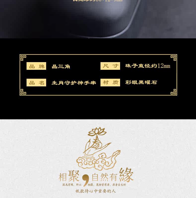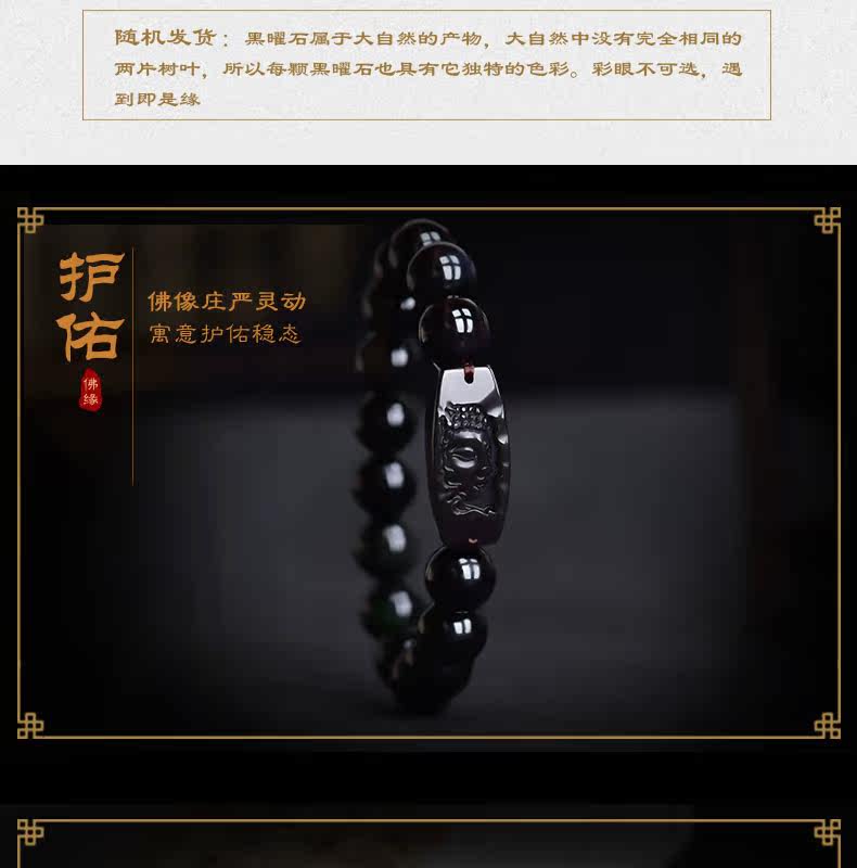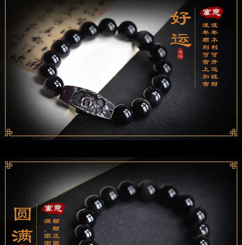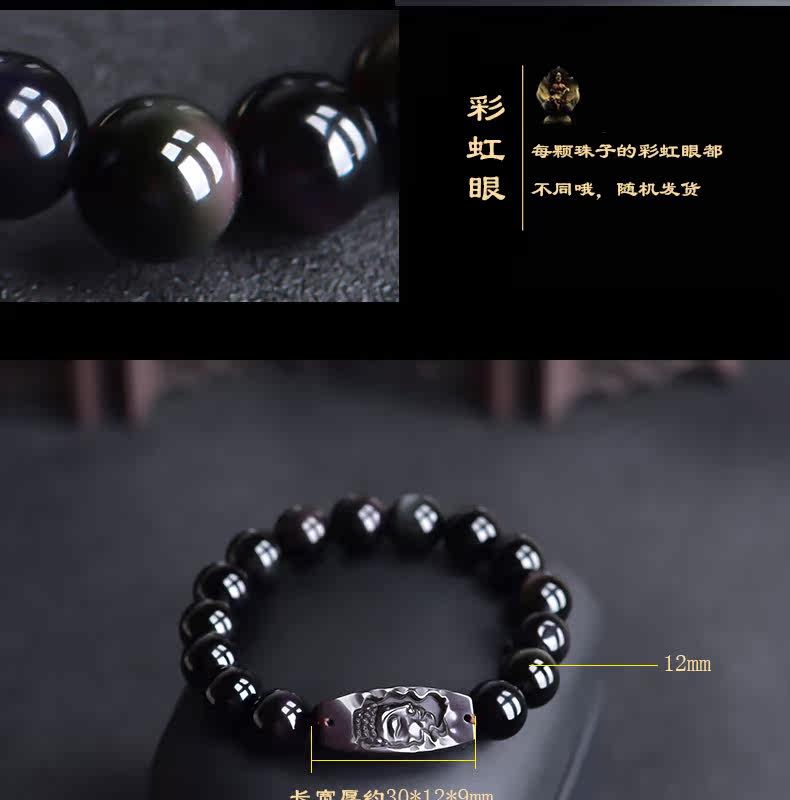 开光天然彩虹眼黑曜石阿弥陀佛菩萨手链生肖属狗猪本命佛男女手串