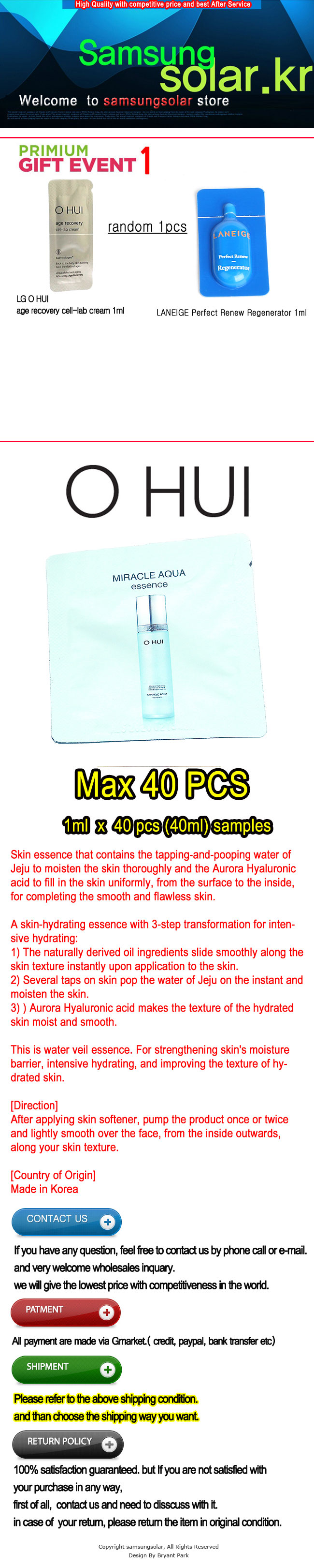 LG OHUI Miracle Aqua essence 1ml x 10pcs or 20pcs or 30pcs skin-hydrating