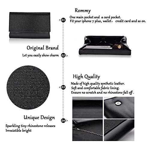 HIGH QUALITY: Made of Synthetic leather. This clutch purse is very durable with colorfast and detachable chain strap, Soft and comfortable fabric lining, Each clutch bag is carefully selected to ensure no scratch and no rhinestone fall off.
