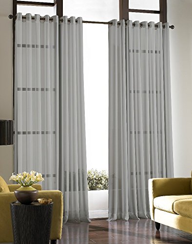Create an airy appearance at your window with this beautiful, barely-there grommet panel! sheer panel is constructed of a fine, lightweight high twist voile fabric with a soft shimmer. Panel features 1.5-Inch dark gray grommets in a matte finish. Panel is offered in a stylish variety of classic colors. Single, wide-width panel measures an ample 59 Inch wide. Panel is sold individually.Feature