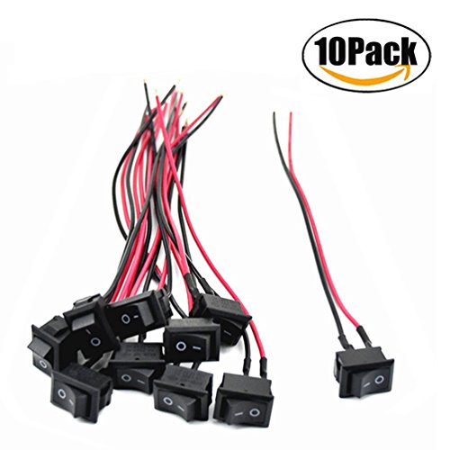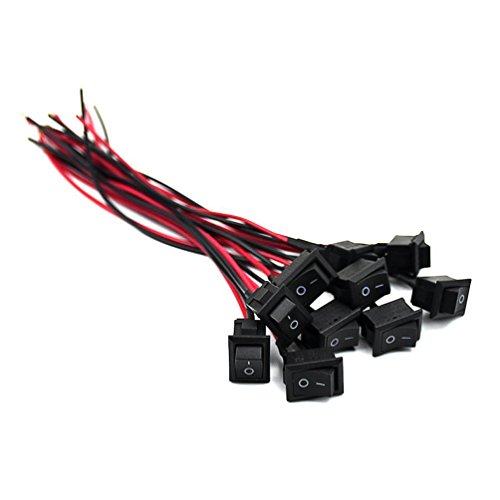 COOLOOdirect 10 Pcs Black AC 6A/250V 10A/125V 2 Solder SPST On/Off Mini Boat Wired Rocker Switch Car Auto Boat Round Rocker 2Pin Toggle SPST Switch Snap With lines (Black, 2.1 x 1.5cm)