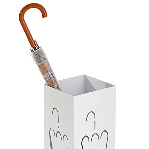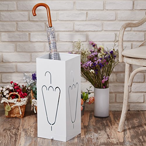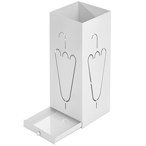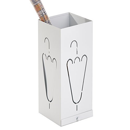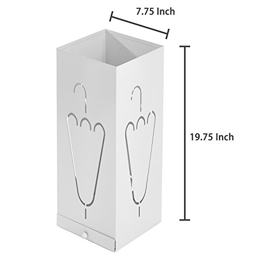 Studio : MyGift Publisher : MyGift Binding : Kitchen Product Description Store your wet and dry umbrellas in style with this rectangular metal umbrella holder stand. A laser cut umbrella design on each side of this stand creates a unique touch while allowing airflow, to quickly dry your wet umbrellas. A small drip tray drawer is easily removable for quick clean up of excess water. Its simplistic white powder-coat finish and minimalist design make this umbrella holder ideal for any home, apartment or office space. You could even store sports equipment such as baseball bats, hockey sticks or lacrosse sticks in your garage or entryway. So don't let your umbrellas stay wet or get lost, organize them with this modern umbrella holder stand. **Official MyGift® product** Approximate Dimensions (in inches): 19.75 H X 7.75 W X 7.75 D. 0 |