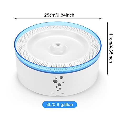 Research shows one way to improve your pet's health is to get him to drink more water. Water is essential for supporting your pet's vital organ function. On average, your pet should drink one ounce of water per pound of weight daily. Ownpets Drinking Fountain provides convenience for you while giving your pet plenty of water to stay hydrated. The free-falling stream aerates his water, and FOUR filter layer removes bad tastes and odors. Features: -Touch Button: Gently press to start up or switch to other drinking mode; A long press till you hear a long sound to power off. -Light Indicate: Blue light indicating water level is proper; if turning into red light, it indicates water is not enough; flashing blue light reminding the filter should be replaced with a new one. -Water Shortage Protection: the fountain pump stops working automatically when the window light is red; it restarts by itself when water is enough -3 Intelligent Working Mode: NORMAL: water flows continuously. SMART: water flows 30sec with 30min pause intervals . FANCY: water flows 1-10sec with 1-10sec pause intervals. -Four filter layers: Activated carbon filter Removes bad tastes and odors for fresher, better-tasting water .Pre-filter catches hair and other large particles before they reach the pump to prolong pump life Tips: You can swash the filters when the first time before you using and Take off the AC adapter before washing Check and wash fountain parts regularly NOTE: We have one more set of filter cotton for you can replace in the box. Specification: Material: FDA certified ABS Weight: 1.8 lb Water capacity: 0.8 gallon Filter mesh water capacity: 0.105 gallon Voltage: DC 12V Power:1.5W Packing list: 1*Ownpets® pet drinking fountain 1*user manual 1*AC adapter 2 *sets of filters 0 |