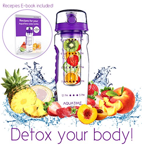 LATEST VERSION - AQUATIME 32oz infuser water bottle and timeline to track your drinking during the day has a leak proof design, highest quality BPA free, Eastman Tritan copolyester and more. Our quality combined with best customer service makes us the natural choice for your infuser water bottles!