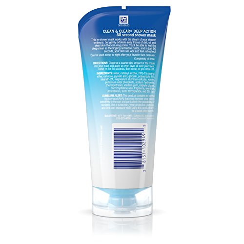 Use Clean & Clear Deep Action 60 Second Shower Mask to gently exfoliate skin in just 60 seconds right in your shower. This oil-free shower mask is designed to work with the steam of your shower to deeply, but gently exfoliate skin and cleans away traces of dirt, oil, and dead skin that can clog pores. The oil-free, non-comedogenic formula helps your skin look clean while the good tingling sensation helps you feel refreshed. In just 60 seconds, your skin will look and feel refreshed. Use the face mask two to three times per week alone or right after your favorite facial cleanser for best results.Feature