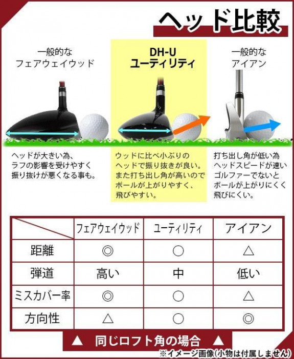 | フェアウェイウッドが苦手、でもアイアンより飛距離を出したい!という方にピッタリのアイアン感覚で打てるユーティリティです。溝付きソールで、スイング時のひっかけを激減させます。 |