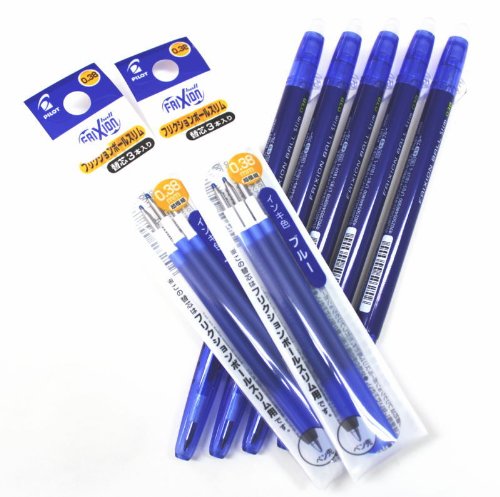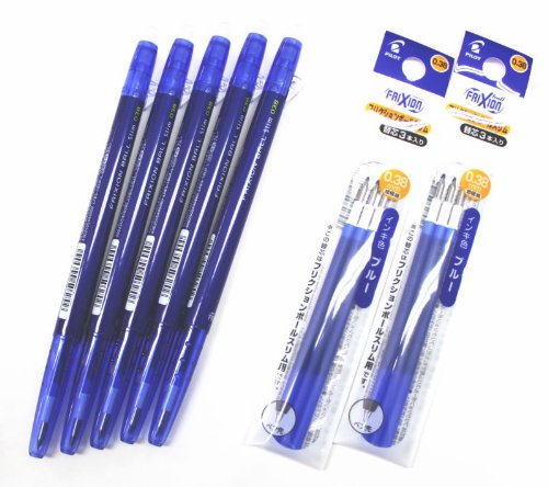 Pilot Frixion Ball Slim Retractable Erasable Gel Ink Pens,fine Point, - 0.38 mm - Blue Ink- Value Set of 5 & 6 Gel Ink Pen Refill Pack