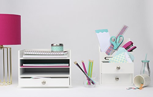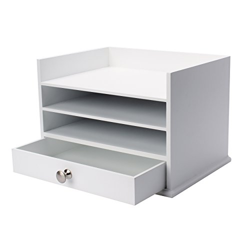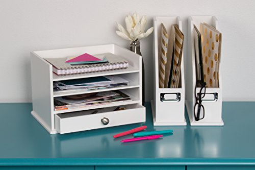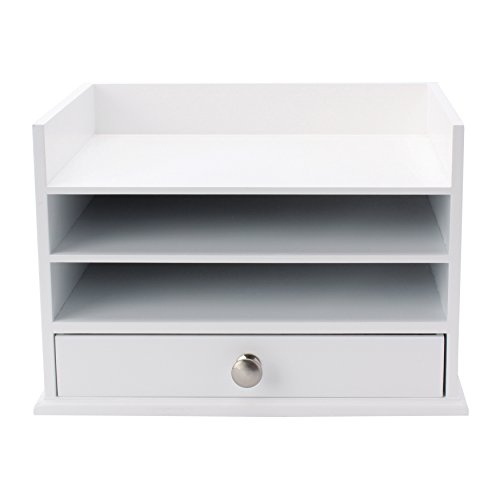 -. Binding : Office Product -. Brand : DesignOvation -. Feature : Decorative letter tray perfect for desktop organization in office, home office, or kitchen / Desktop tray organizer with has three letter trays and a drawer that hold standard 8.5x11 paper / Desktop display dimensions are 13.375 inches wide by 9 inches high by 9.75 inches deep / Contemporary style desk organizer to keep all your mail or papers organized or hidden in the drawer / Office organizer is constructed of manufactured wood with decorative metal drawer pull -. Label : Uniek -. Manufacturer : Uniek -. PackageQuantity : 1 -. ProductGroup : Office Product -. ProductTypeName : OFFICE_PRODUCTS -. Publisher : Uniek -. Studio : Uniek -. Title : DesignOvation Francesca Desktop Organizer with 3 Letter Trays and Drawer