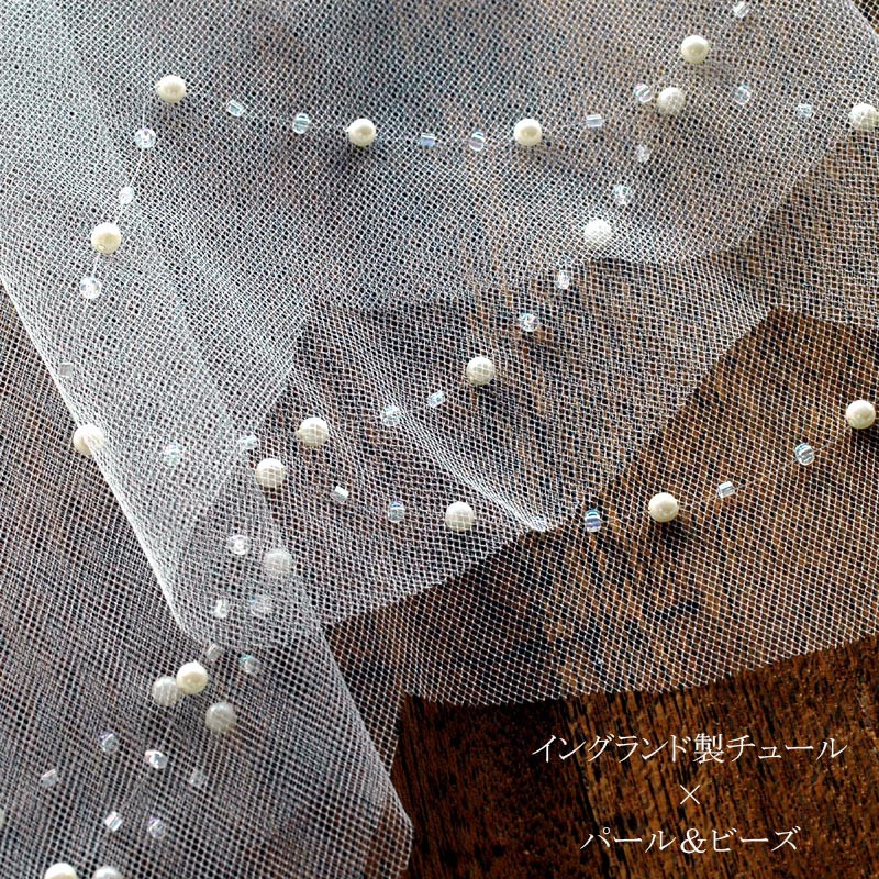 チュール(ナイロン100%・イングランド製) パール、ビーズ コーム(スチール・京都老舗メーカーの日本製) |