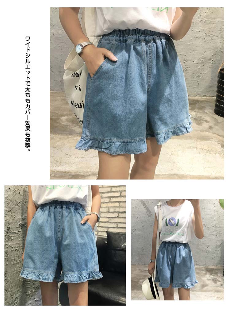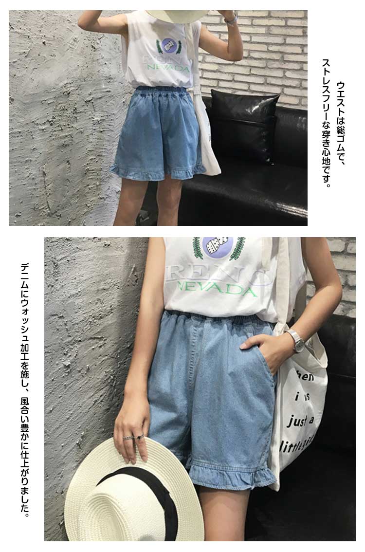 | 脚長&美脚効果絶大のデニムガウチョパンツ★ワイドシルエットで太ももカバー効果も抜群。ウエストは総ゴムで、ストレスフリーな穿き心地です。デニムにウォッシュ加工を施し、風合い豊かに仕上がりました。シンプルなトップスにも合わせやすく、スニーカーやサンダルとも相性抜群です | |