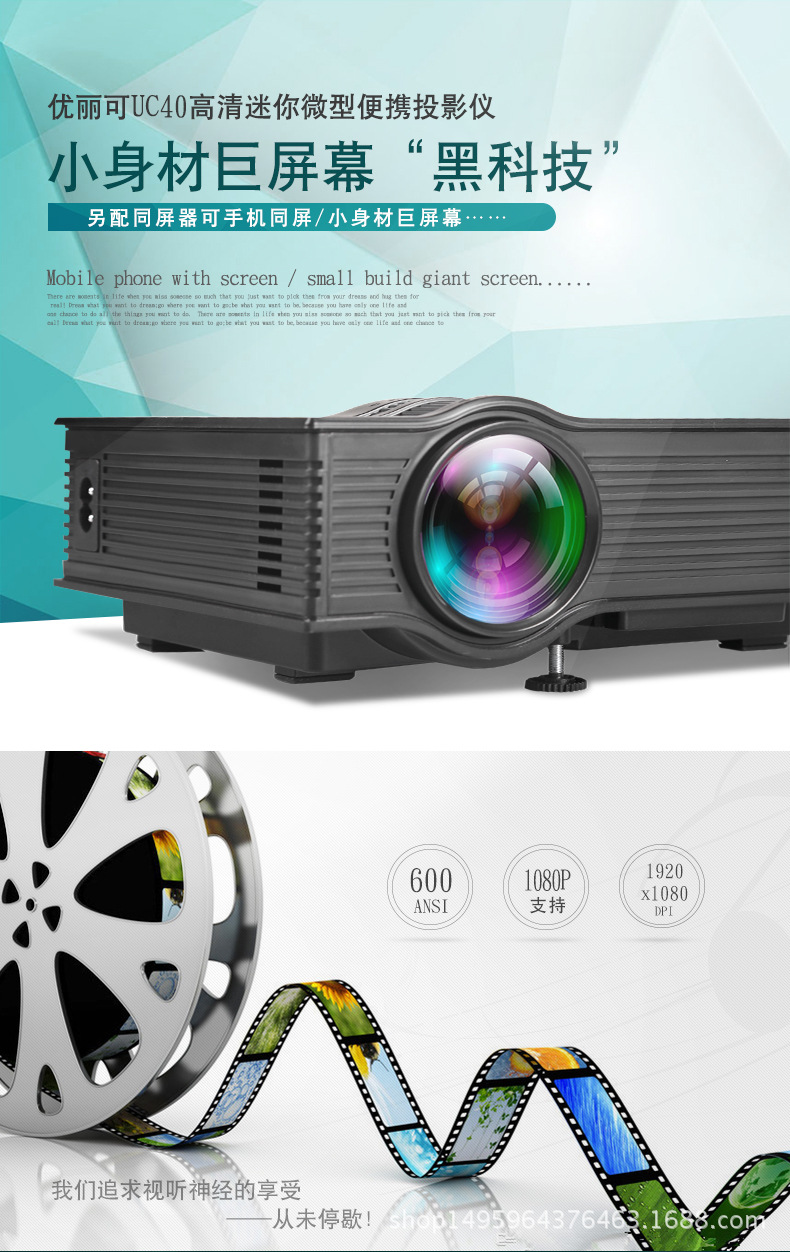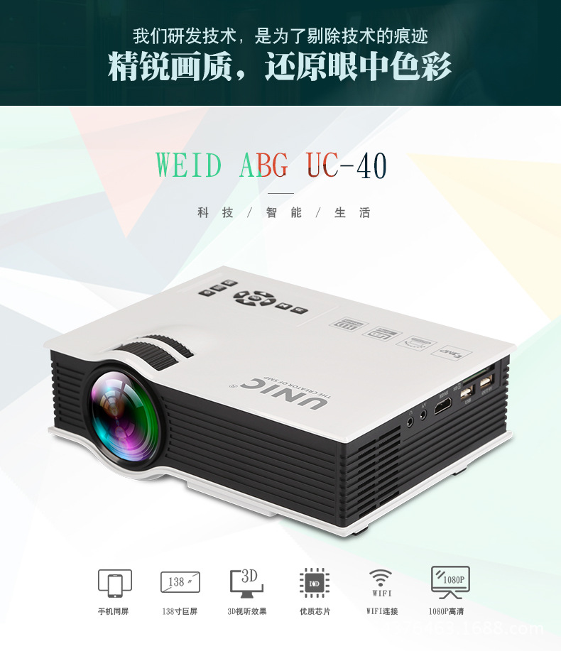 热销款UC40+微型家用高清投影仪 LED便携迷你3D投影机厂家直销