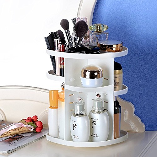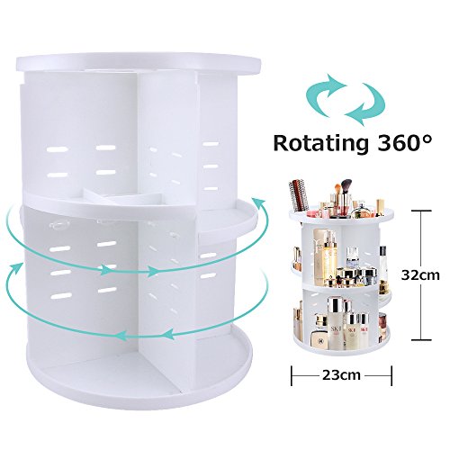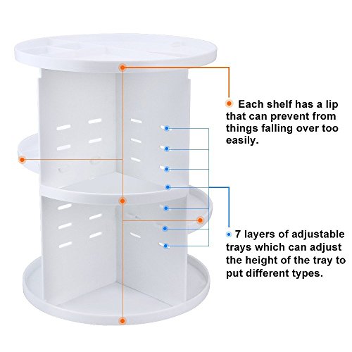 - Adjustable and flexible: 7 layers of adjustable trays which can adjust the height of the tray to put different types and sizes of cosmetics. A very handy makeup carousel,spins 360 degrees that every side is easily accessible