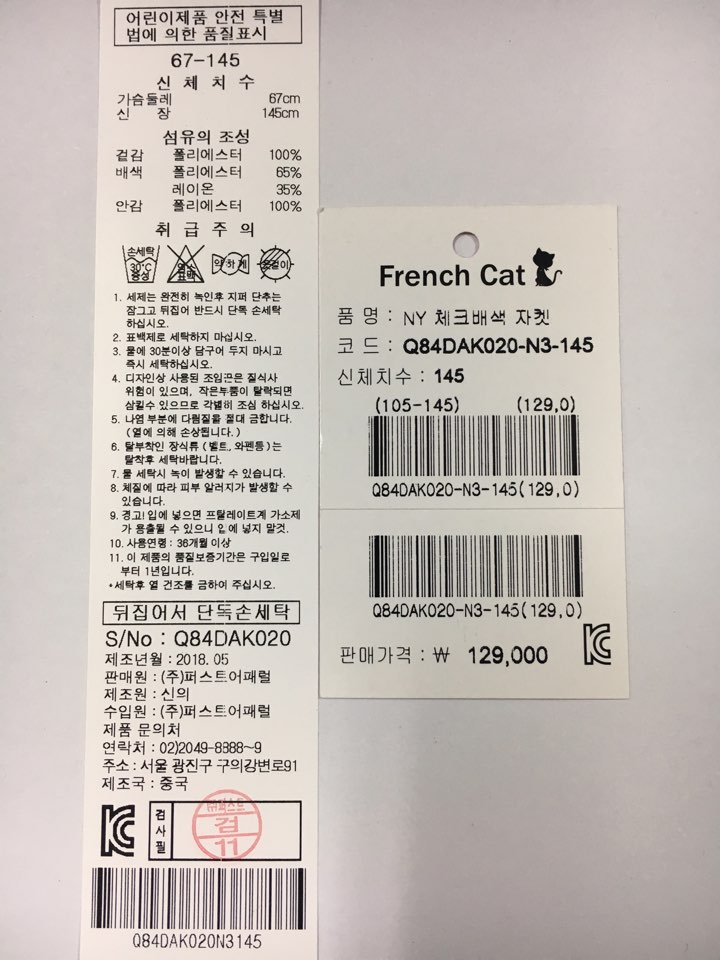 제조자 : 퍼스트어패럴