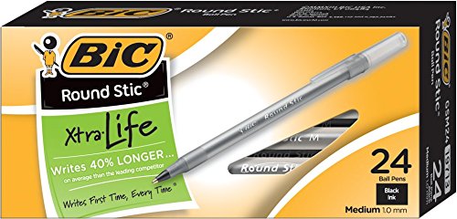 BIC Round Stic Ballpoint Pens, 1.0 mm, Black, Box Of 24