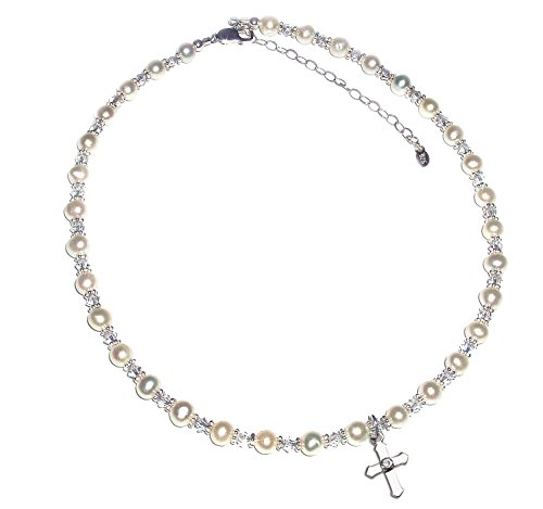 -. Feature : Perfect First Communion or Confirmation Gift for Girls / Luxury Keepsake Quality, Hand Strung in the USA / Each Necklace has adjustable sizing (Fits 3-12 years) / Sterling Silver, Cultured Pearls, Swarovski Crystals, and Dainty Cross Charm / Jewelry Comes in Beautiful Gift Box