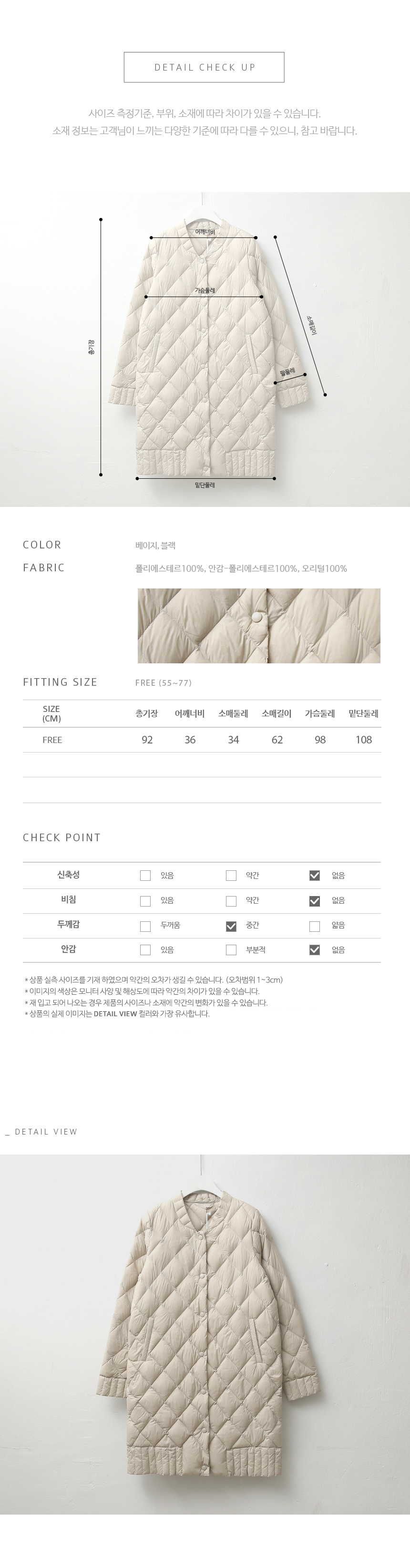 고급스러운 다이아 퀼팅 오리털 롱 패딩