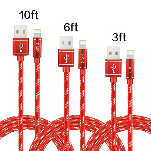 -. Feature : Durable & Flexible: Built with pure copper wiring inside, premium quality nylon cloth and solid aluminum alloy shell at the both connectors, it can withstand heavy use with tangle-free and flexible design. / 3PCS iPhone/iPod/iPad cables Extra Long are ideal for usage while charging in home, cars, office and more / Lightweight, highly durable construction for portability and reliability.Charge and Sync Cable, we devote ourselves to offering the best purchasing experience for our customers. / Widely Compatible: iPhone 7/7Plus/6/6s /6 plus/6s plus, iPhone5/5c, /5s, iPad Air/ Air 2, iPad with Retina Display, iPad mini/mini 2 / mini 3,iPod Touch 5th gen, iPod Nano 7th gen and devices with lightning ports. / 12 Months Carefree Extended Warranty by FAIR. Responding to most messages within 24 hours.