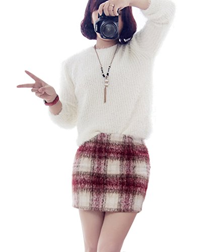 -. Title : ELPIS レディース ウール シンプル チェック タイト ミニ スカート ホワイト白 XS S M L XL XXL XXXL 7サイズ 展開
