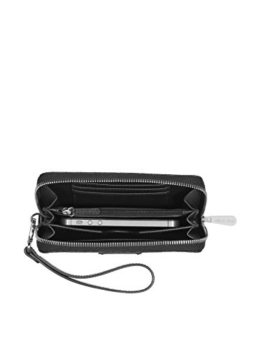 Feature : Compatible with iPhone 4, iPhone 5, iPhone 6, and Samsung Galaxy / Interior Details: One Zip Coin Pocket, One Cell Phone Pocket, Three Card Holders, One Open Pocket / 6.5" X 3.75" X 1" / Top Zip Closure / -Michael Kors Signature Logo PVC