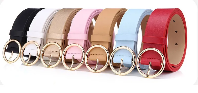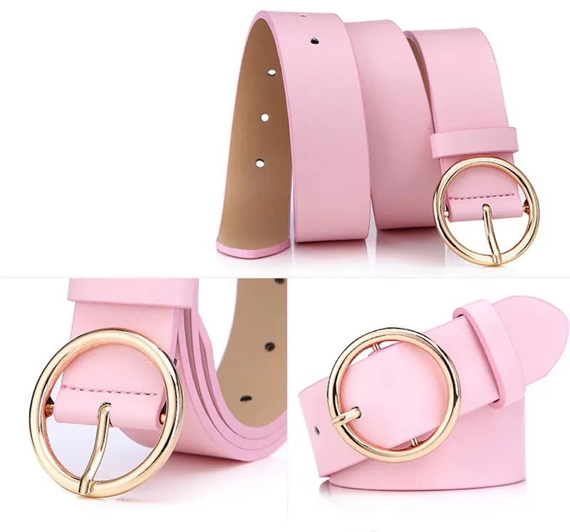IFENDEI PU Leather Belts For Women Round Buckle Female Waist Belt Casual Wild Wear-resistant Ladies Pink Belts Ceinture Femme