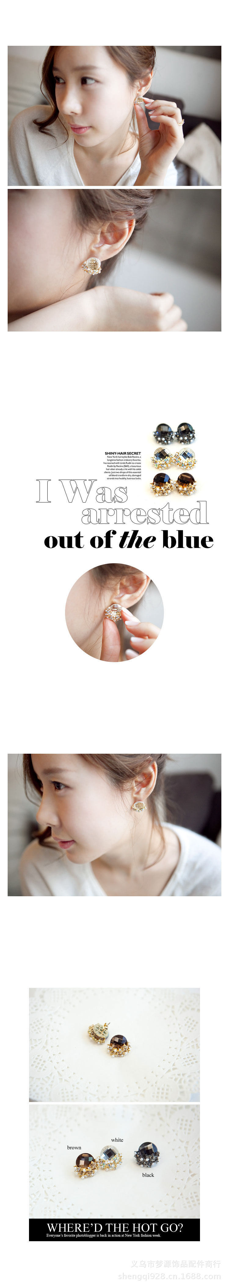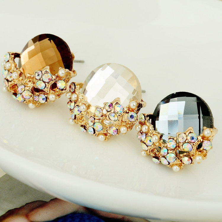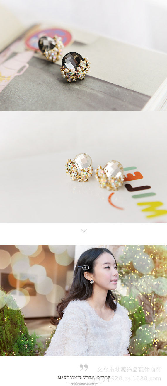 Material: Alloy + Auden drill + artificial pearl + color plating, ear nail hypoallergenic