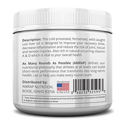 -. Binding : Health and Beauty -. Brand : AMRAP Nutrition -. EAN : 0040232325953 -. Feature : AMRAP Nutrition Cod Liver oil is wild caught and cold processed. / Naturally fermented AMRAP Nutrition's Cod Liver oils is rich in vitamins and contains a balanced ratio of Vitamin A & D. / Each batch of AMRAP Nutrition's Cod Liver oil is independently third-party tested for impurities and heavy metals such as mercury. / AMRAP Nutrition's Cod Liver oil is wild caught and sustainably harvested under the International Fishing Standards Program (IFSP). / Each 500mg softgel is encapsulated in a nitrogen vacuum to prevent oil oxidation and preserve the highest quality. -. IsAdultProduct : 0 -. Label : AMRAP Nutrition -. Manufacturer : AMRAP Nutrition -. ProductGroup : Health and Beauty -. ProductTypeName : HEALTH_PERSONAL_CARE -. Publisher : AMRAP Nutrition -. Studio : AMRAP Nutrition -. Title : Fermented Cod Liver Oil | AMRAP Nutrition - Wild Caught & Cold Processed. -. UPC : 040232325953