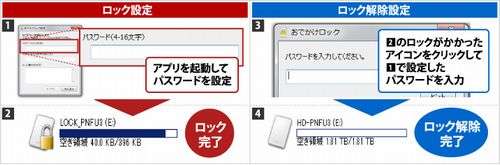 ※バッファロー社ホームページからダウンロードしてご利用になれます。※ロックのかからない通常モードにも切替可能です。