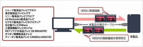 ???各社メーカー製液晶テレビに対応。ポータブルHDDへの録画に対応するテレビと接続して、本製品に番組を録画・再生することができます。