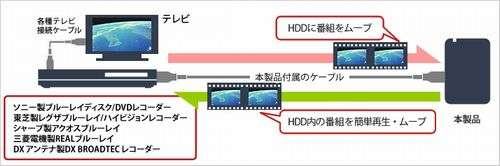 ???接続方法や動作確認済みテレビの型番は、「テレビ対応(動作確認済み)ハードディスク検索」をご覧ください。
