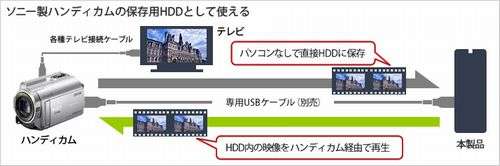 ???外付けHDDへの保存に対応するハンディカムと接続して、本製品にカメラで撮りためた映像をダイレクトに保存・再生することができます。