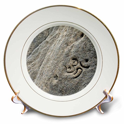 3dRose cp_107707_1 Hinduist Om Sign Carved on Stone in Sa Pedrera Des Savinar, Hidden Place Known As Atlantis, Ibiza-Porcelain Plate, 8-Inch