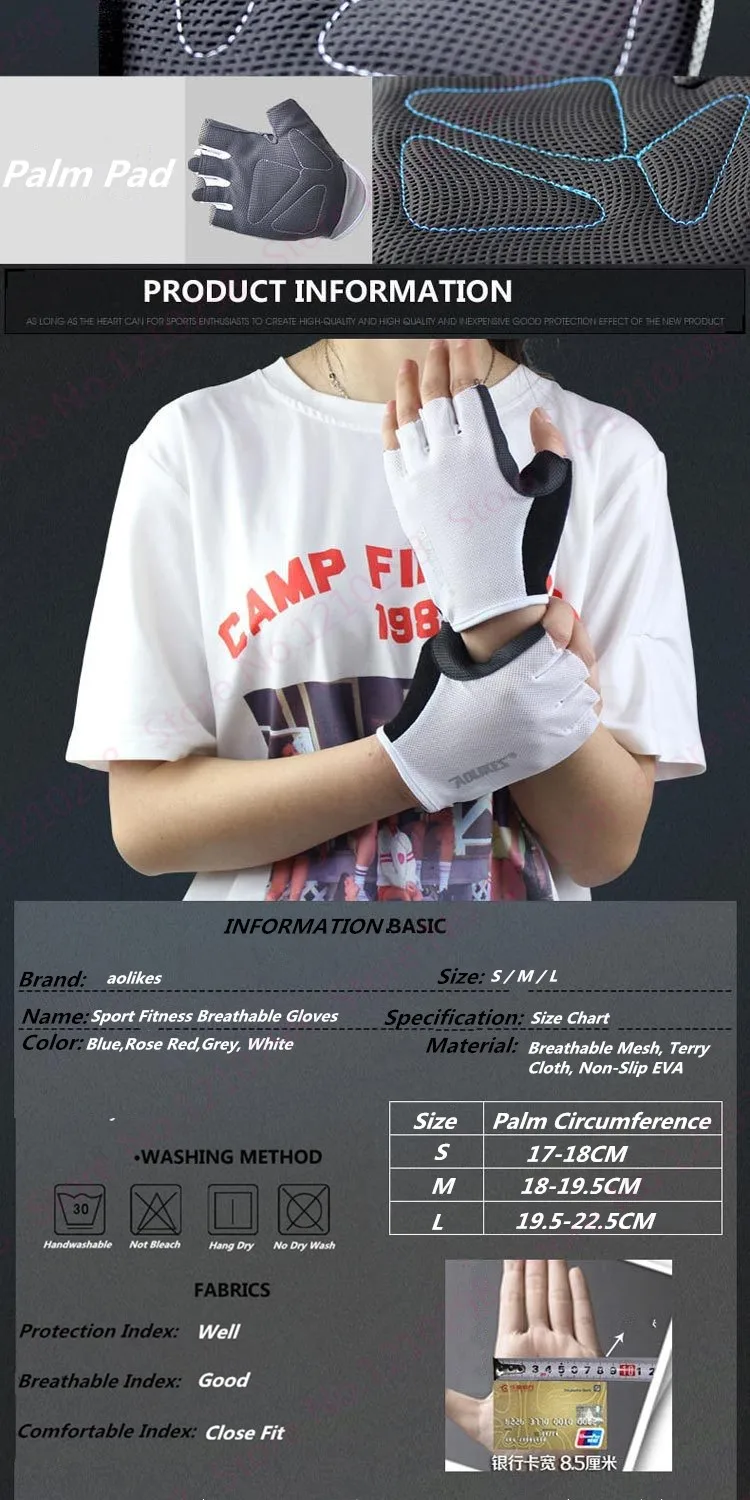 Items:Unisex Sport Half Fingers Fitness Gloves Protecting Palms Support