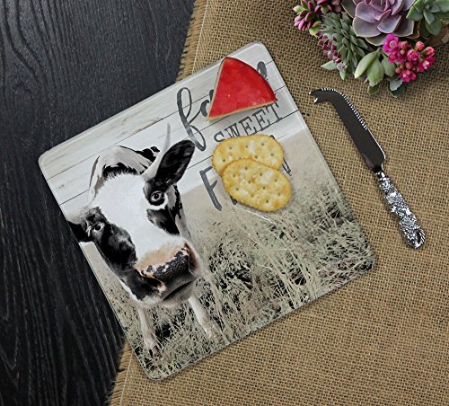 CounterArt 'Farm Life' 8-Inch Square Glass Cheese Board with Cheese Knife