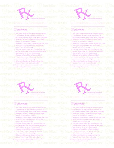 WATERMARKED PAPER; long lasting 500 sheet supply printed using medical blue paper with watermark that cannot be duplicated and changes color when scratched with a coin for superior security
