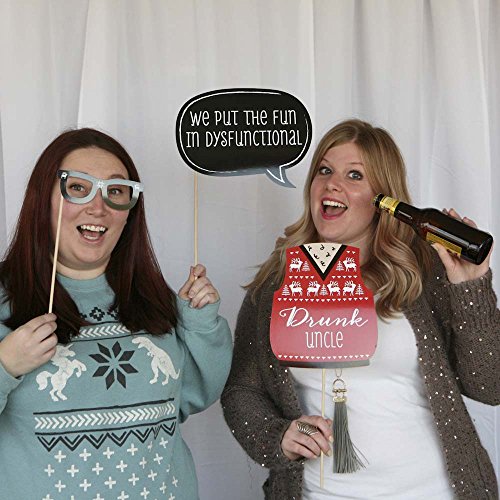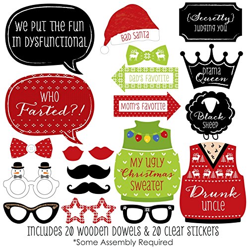 20-Piece Christmas Photo Booth Props Kit INCLUDES 20 Christmas Family Reunion photo booth props, 20 wooden dowel sticks and adhesives for assembly. EASY ASSEMBLY: Simply attach the printed DIY photo booth props to the wooden dowels with included adhesive and reinforcing stickers.
