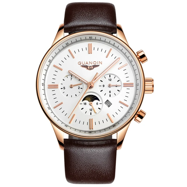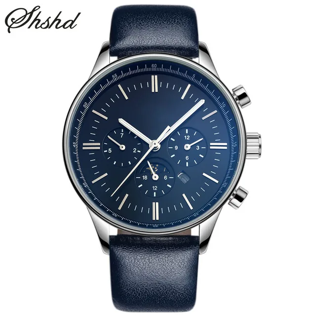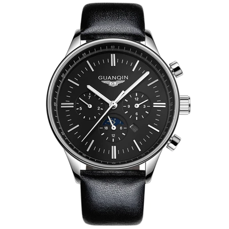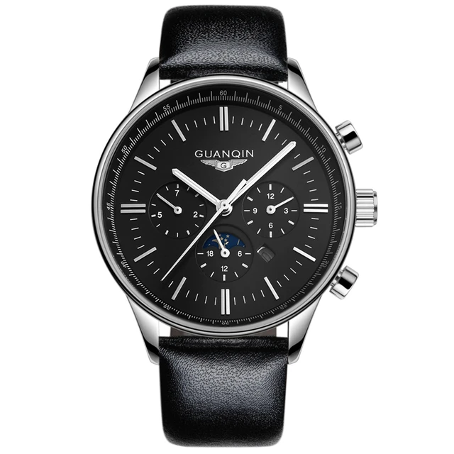| [해외] 럭셔리 남성 시계 가죽 밴드 블랙 남성 시계 골드 비즈니스 아날로그 손목 시계 전체 일정 실버 Montre 옴므 |