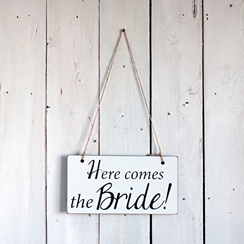 Here Comes the Bride - Ring Bearer Sign for Flower Girl - Wedding Signs for Ceremony - Made of Wood - Black and White, 11x6