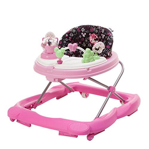 Studio : Dorel Juvenile Group Publisher : Dorel Juvenile Group Binding : Baby Product Product Description The Disney Baby MINNIE MOUSE Music Lights Walker offers plenty of fun for your little one. The oversized play tray features 4 Minnie Mouse and friends toys and conveniently swings open to reveal a snack tray perfect for little treats or other toys. Sturdy wheels work well on floors and carpet alike, while the grip strips reduce walker movement on uneven surfaces. With a machine-washable padded seat, cleaning the walker is as easy as A-B-C! 0